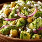 Chickpea Feta Avocado Salad is a bright, satisfying dish that brings together creamy avocado, tangy feta, and hearty chickpeas in one colorful bowl. Each bite offers contrast in texture, from the soft richness of avocado to the slight bite of chickpeas and the crumbly saltiness of feta. Fresh vegetables and a simple lemon dressing tie everything together with clean, vibrant flavor.