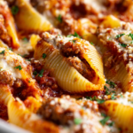As the shells bake, the sauce thickens, the filling becomes perfectly tender, and the cheese forms a golden layer across the top. Each bite delivers a balance of meaty richness, creamy texture, and bright tomato flavor.