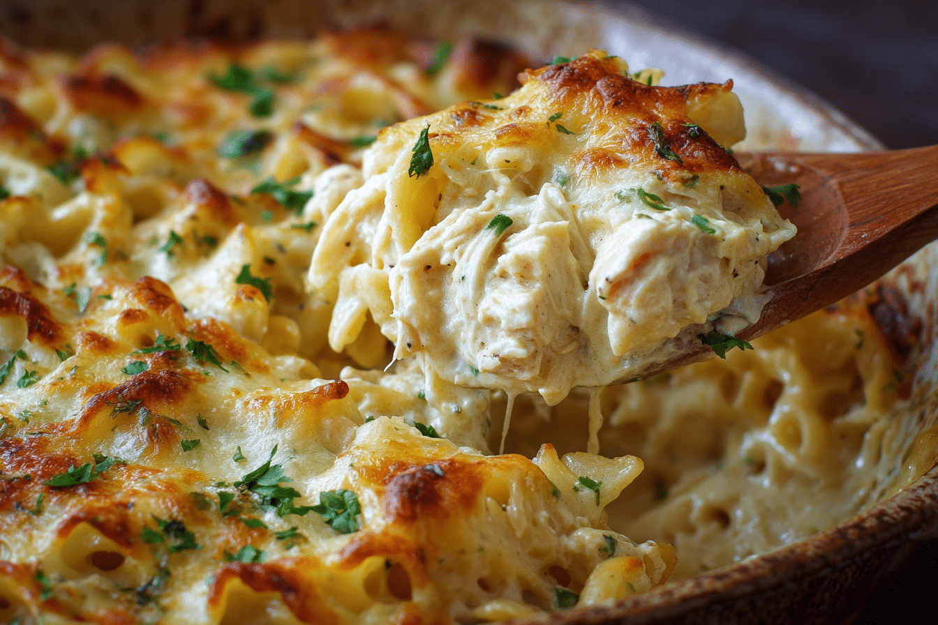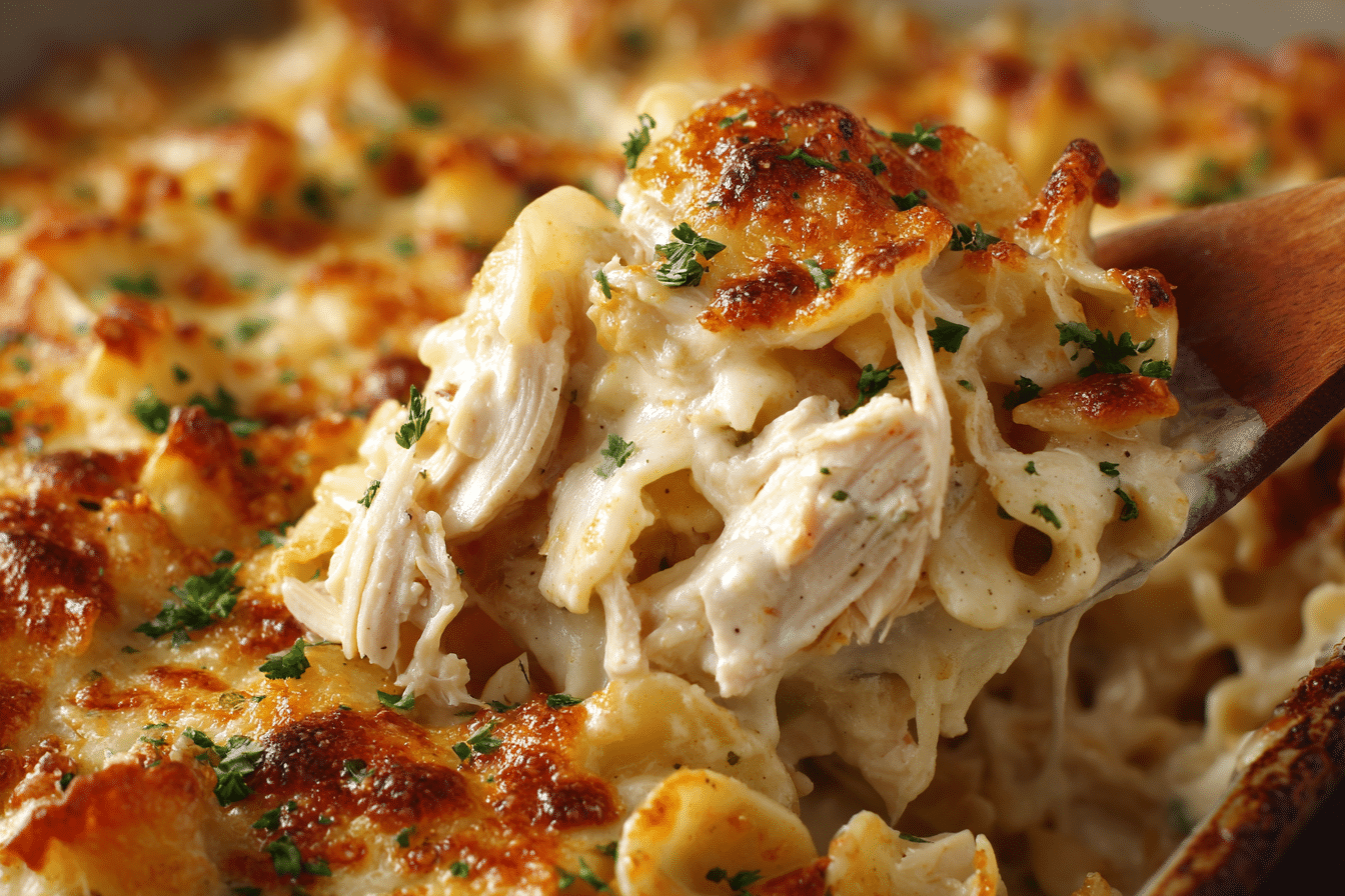 Each bite delivers soft pasta coated in a silky onion-infused sauce, juicy pieces of chicken, and a layer of melted cheese that stretches beautifully from the pan. The sweetness of caramelized onions balances the savory depth of broth and herbs, creating a comforting yet balanced flavor.