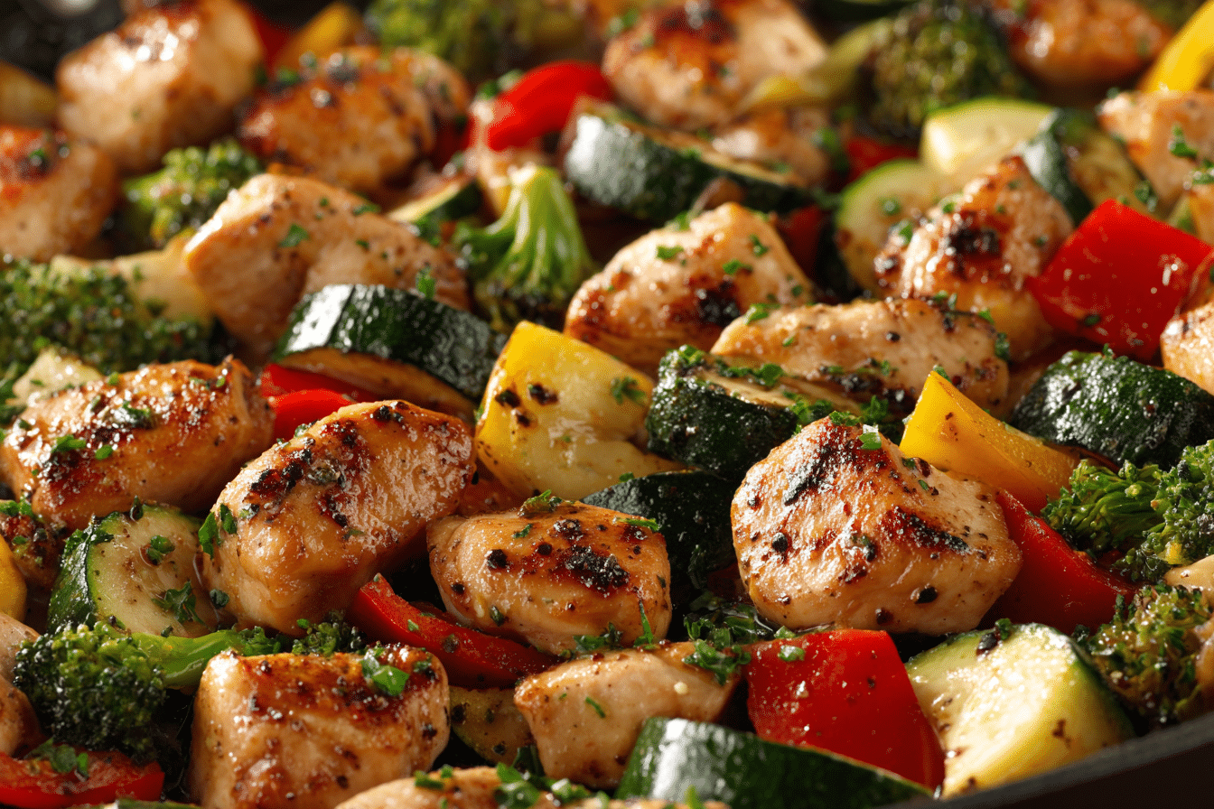 Healthy Chicken and Vegetables Skillet features tender chicken and colorful vegetables cooked together in one pan for a quick and nourishing meal.