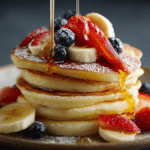 The Ultimate Fluffy Pancake Recipe (Easy & From Scratch!) delivers tall, tender pancakes with golden edges and cloud-like centers. Made with simple pantry staples, these pancakes rise beautifully on the griddle, creating a soft interior that stays light and airy. Each bite offers a delicate balance of sweetness and richness, making them perfect for stacking high and topping with butter and warm syrup.